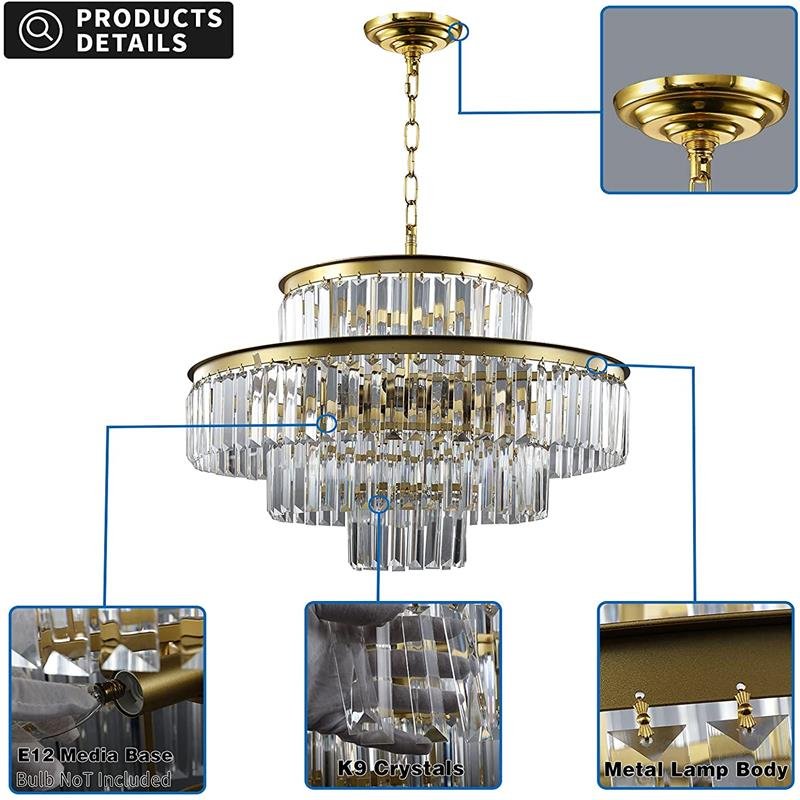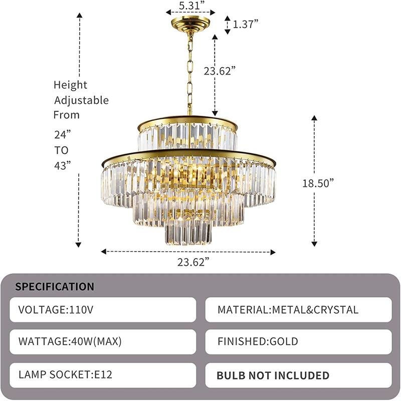 | Product name | J&S Luxury Crystal Chandelier, 8-Lights Contemporary Raindrop Chandelier Lighting Adjustable 4-Tiers Hanging Pendant Ceiling Light for Dining Room Living Room Hotel Gold |
