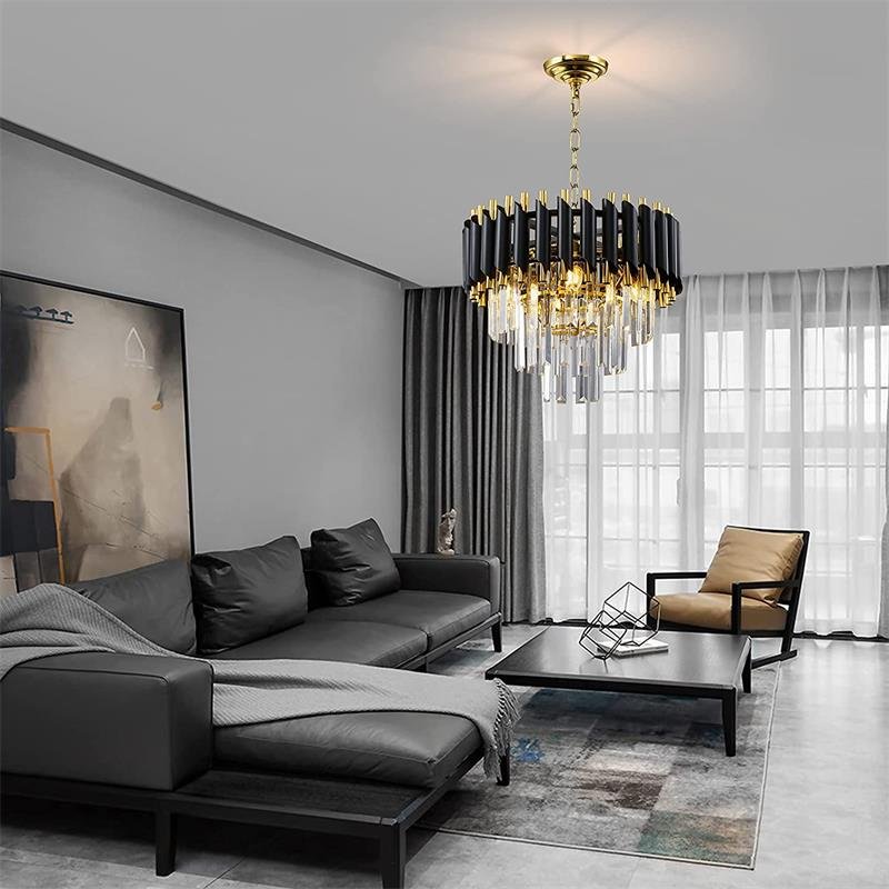 Industrial Adjustable Black Decor Crystal Chandelier
