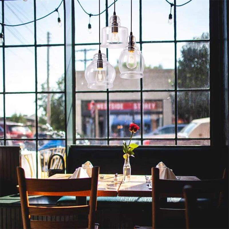 The cluster pendant light with blown clear glass shade, provide a timeless vintage touch and a clean modern aesthetic for your space(NOTE: Glass is fragile, If it is damaged during transportation, please contact us for a replacement).