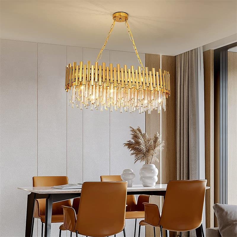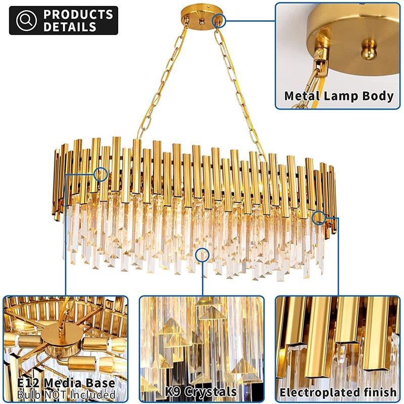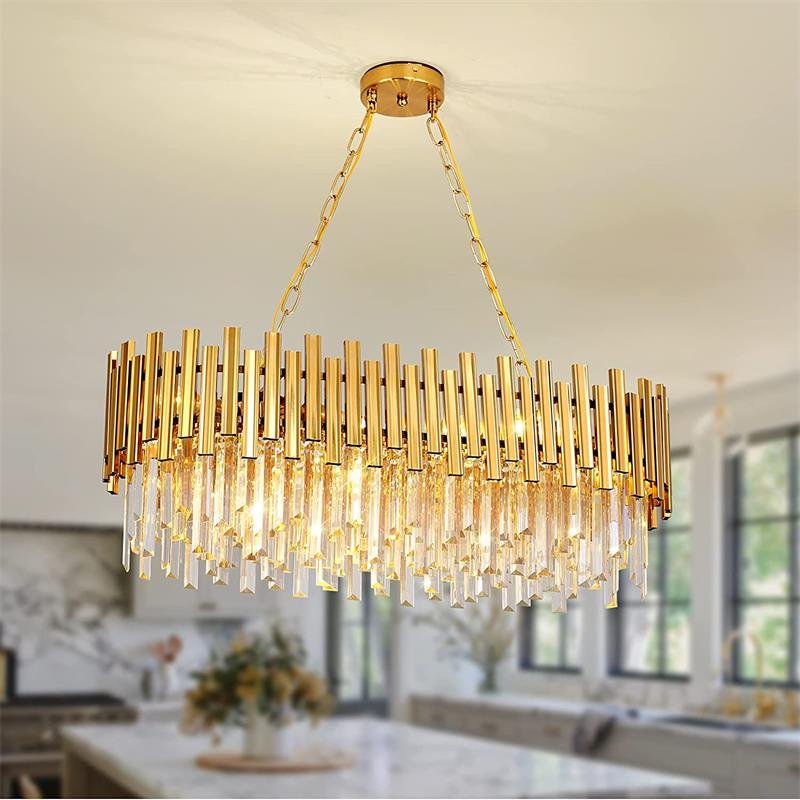 The Gold Crystal Chandelier is a perfect addition to living room, bedroom, dining area, kitchen island, dining table, breakfast nook dining table, billiard room over pool table.