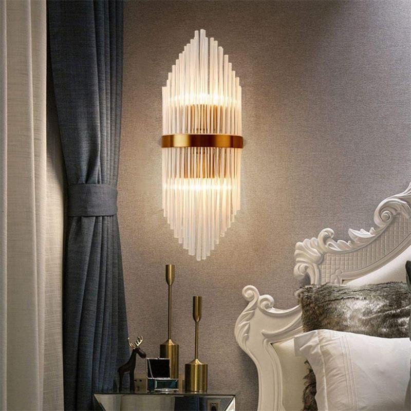 The modern wall lamp is decorated with a crystal wall lampshade.
