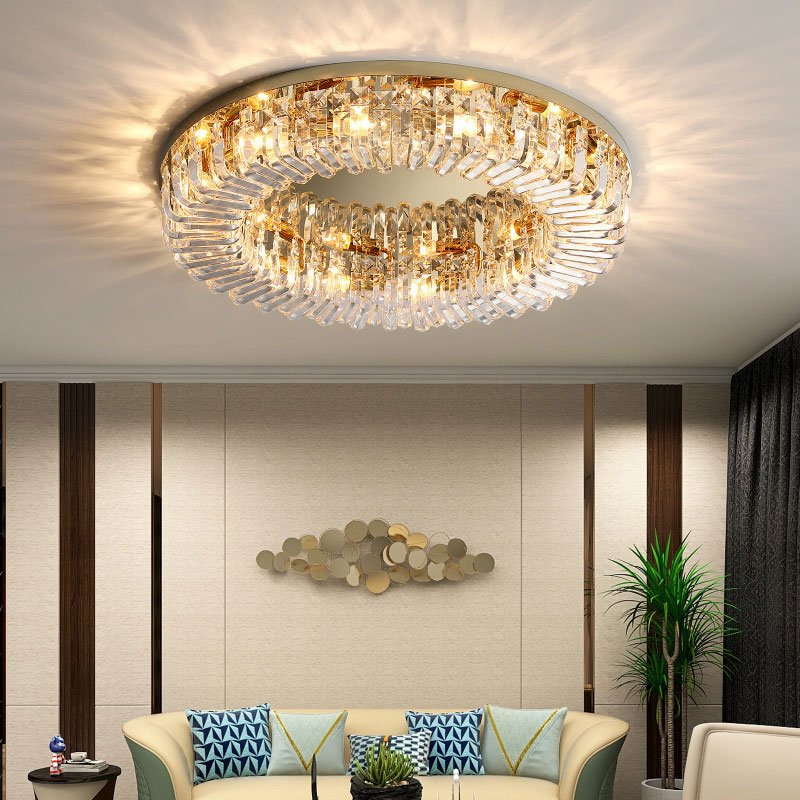 This crystal ceiling light with modern and exquisite design. Steel and crystal material,