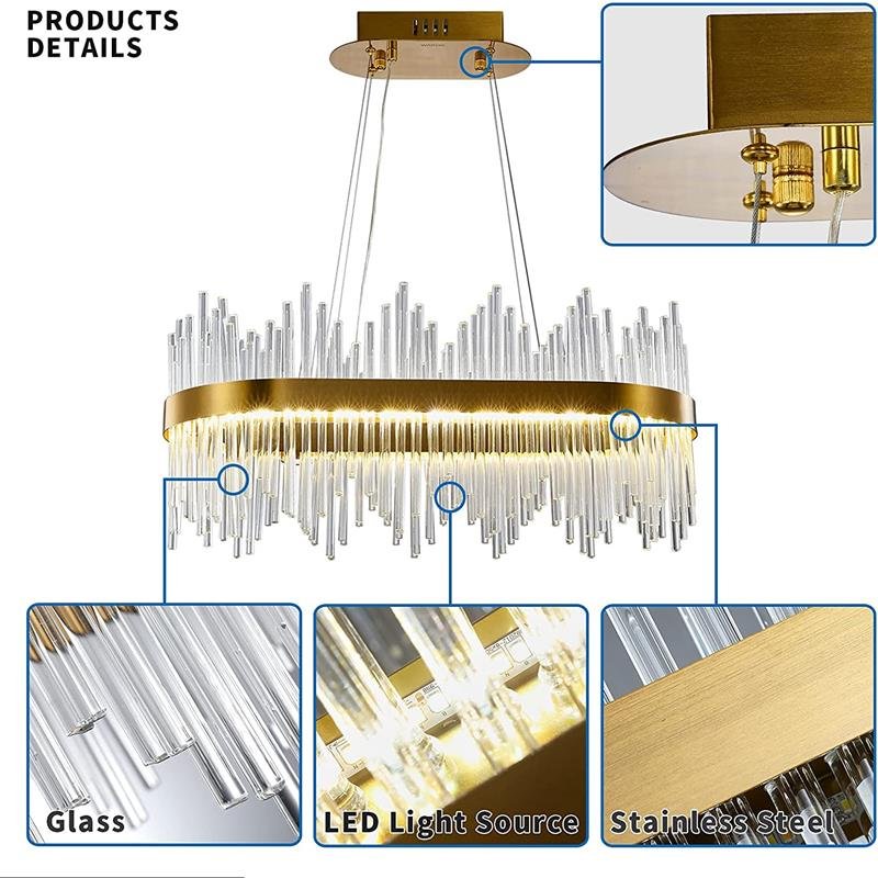 | Product name | J&S Modern Crystal Chandelier, Luxury LED Pendant Light Fixture, Oval Raindrop Chandelier Adjustable Height for Villa, Hotel, Living Room, Dining Room, Kitchen Island L23.62 inch Gold |