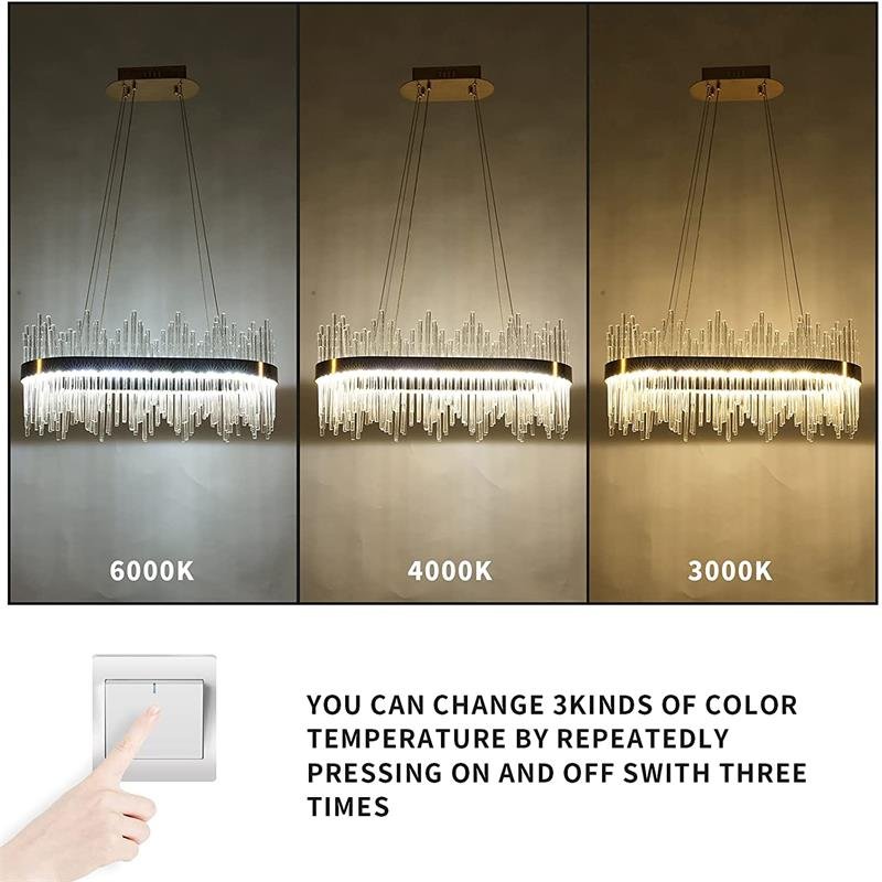 This crystal chandelier is dimmable, supporting 3-level dimming (3000K / 4000K / 6000K) while using any on/off switch.